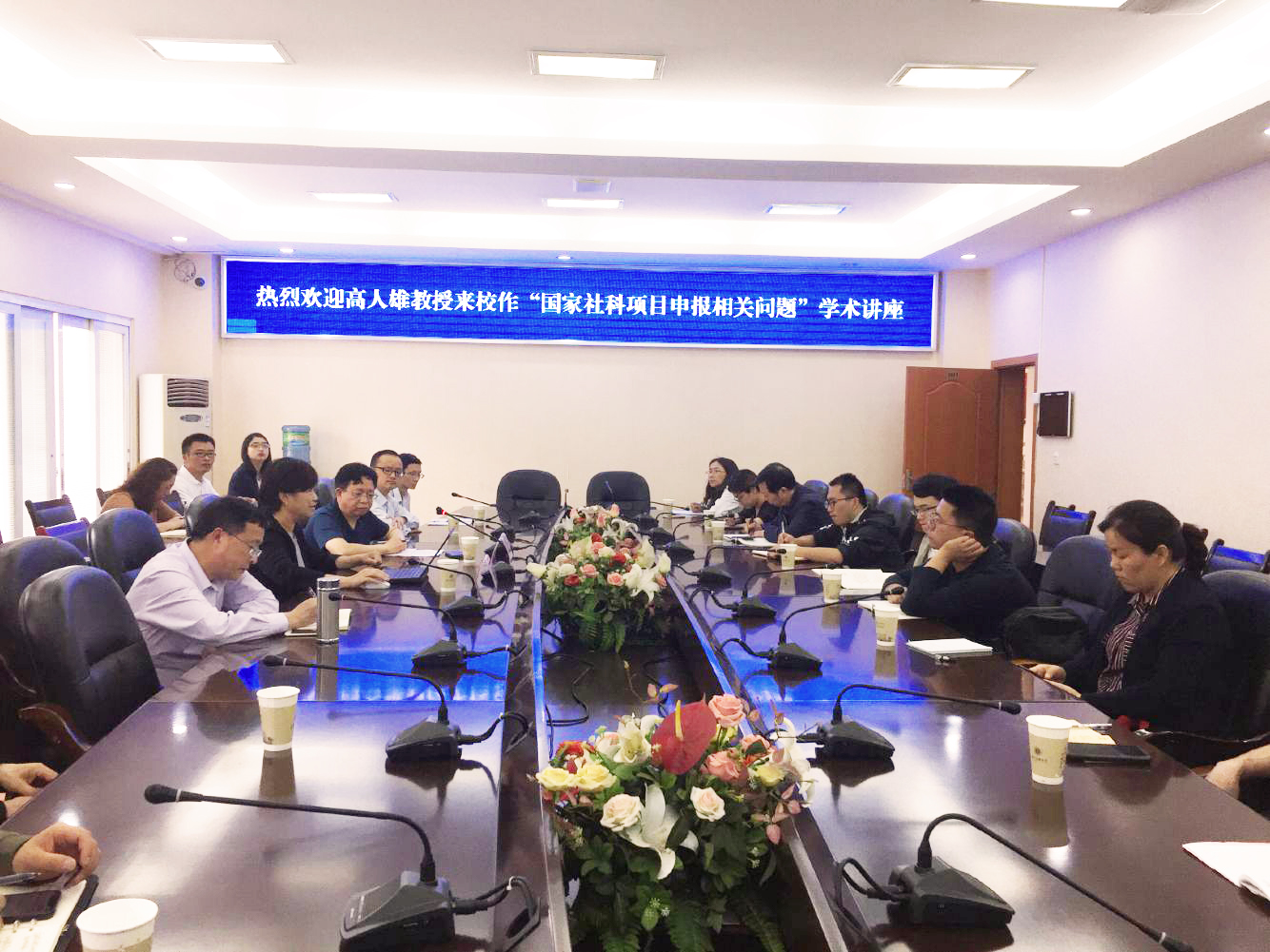 5月27日下午,西北民族大学文学院二级教授、博士生导师、国家社科项目成果评审专家、国家社科基金重大招标项目《全西域文整理与研究》首席专家高人雄教授应邀来校作“国家科研项目申报相关问题”的学术讲座。四川革命老区发展研究中心主任杜松柏教授主持讲座。校科研平台全体成员、学校部分教师聆听了讲座并进行互动交流。