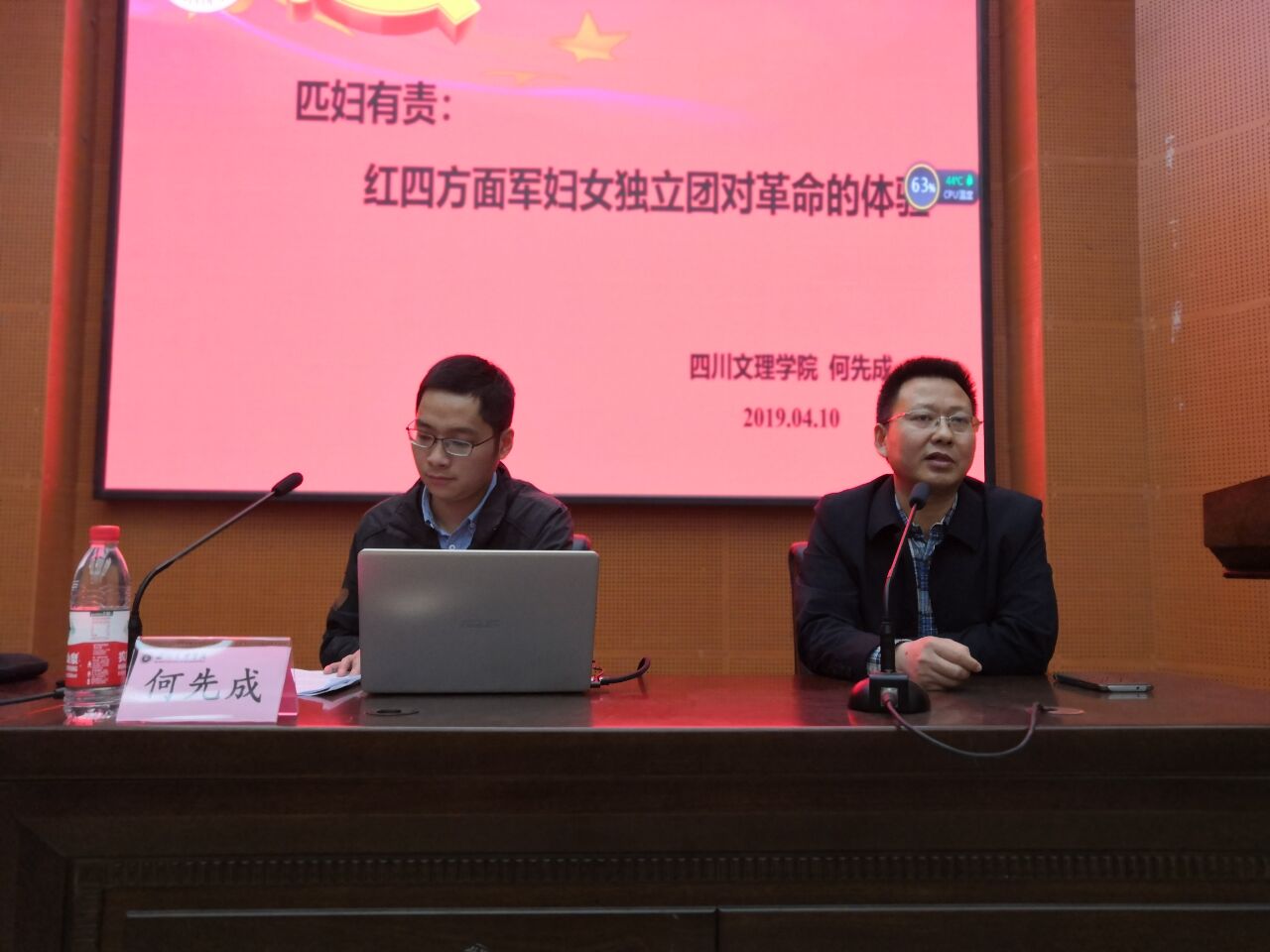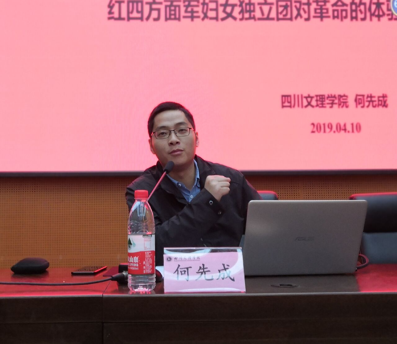 4月10日晚上7点,四川革命老区发展研究中心何先成博士在莲湖校区学术报告厅B厅做了题为“匹妇有责:红四方面军妇女独立团对革命的体验”的学术讲座。马克思主义学院&政法学院院长刘长江教授主持讲座,学院热爱川陕苏区史的同学聆听讲座。