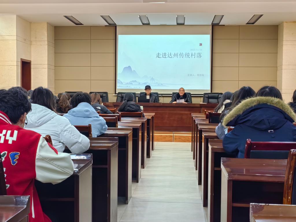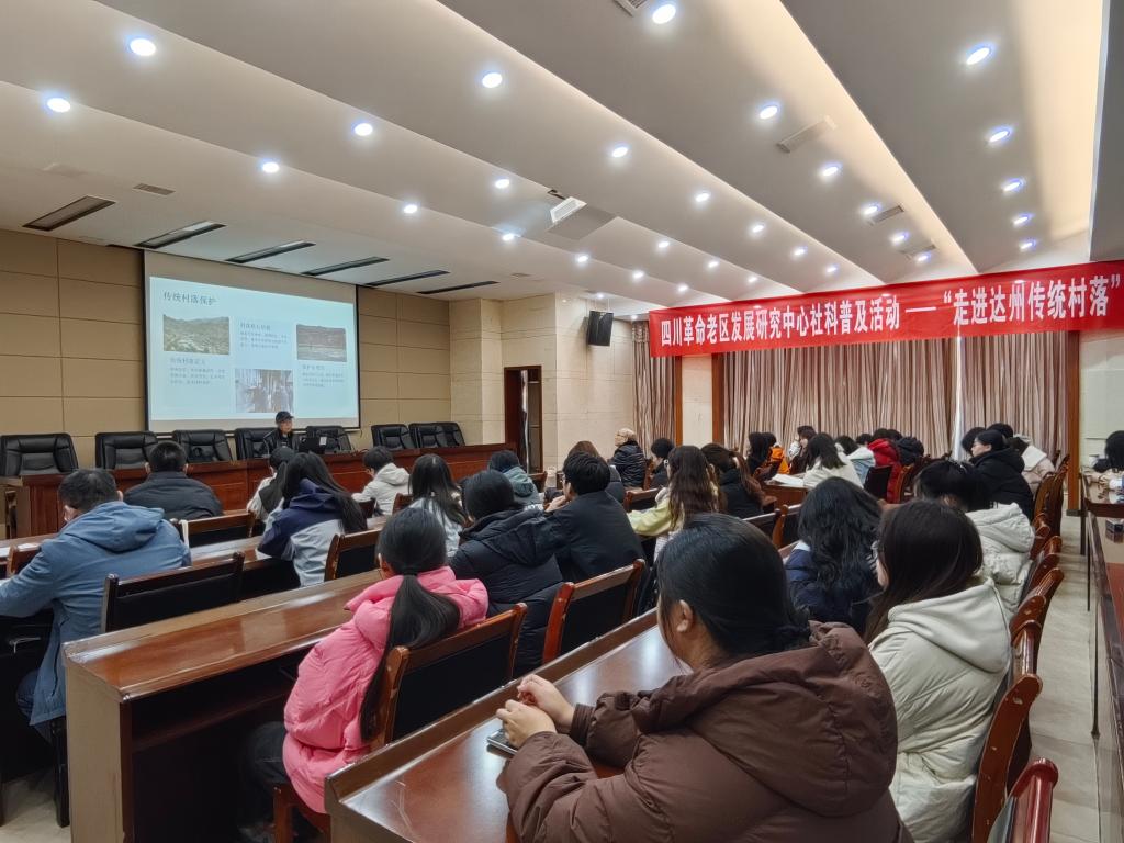 2025年11月24日,四川革命老区发展研究中心在四川文理学院莲湖校区举办“走进达州传统村落”科普讲座。特邀《走进达州传统村落》一书作者郑景瑞担任主讲,为该校200多名师生带来一场关于达州传统村落文化遗产的精彩讲座。