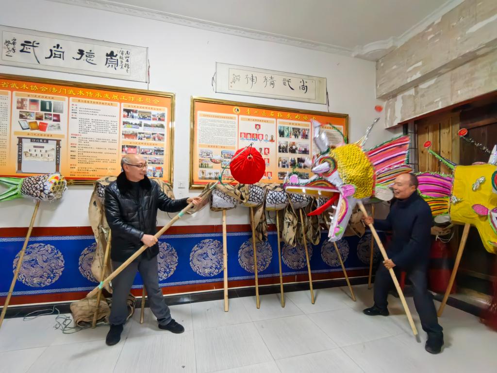 随后,在法门武术会馆,研学团队近距离感受了这一当地特色非遗文化的独特魅力。作为石桥古镇民俗文化的重要组成部分,法门武术与“烧火龙”“翻山铰子”等非遗项目共同构成了古镇的文化肌理。研学团队与相关非遗传承人就非遗文化的传承现状、保护举措及与红色旅游融合发展的可行性展开研讨,提出“红色+非遗”双轮驱动的发展思路,为古镇文旅融合注入新思考。