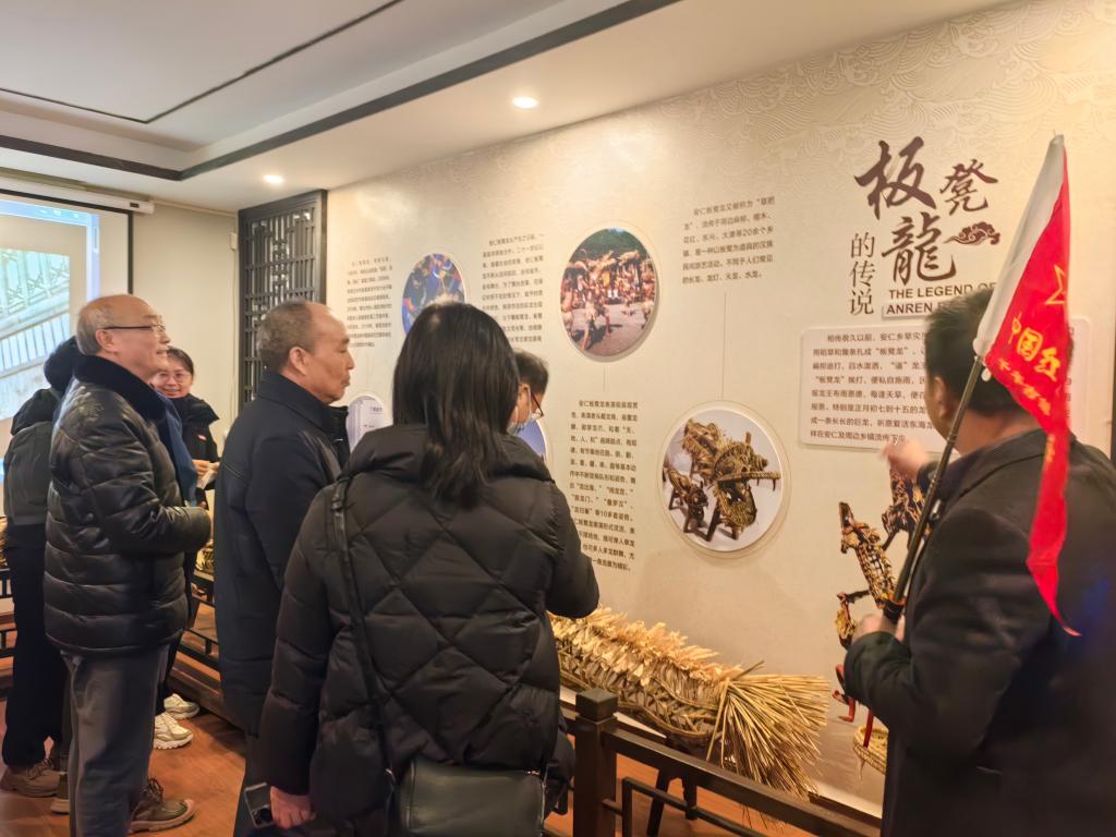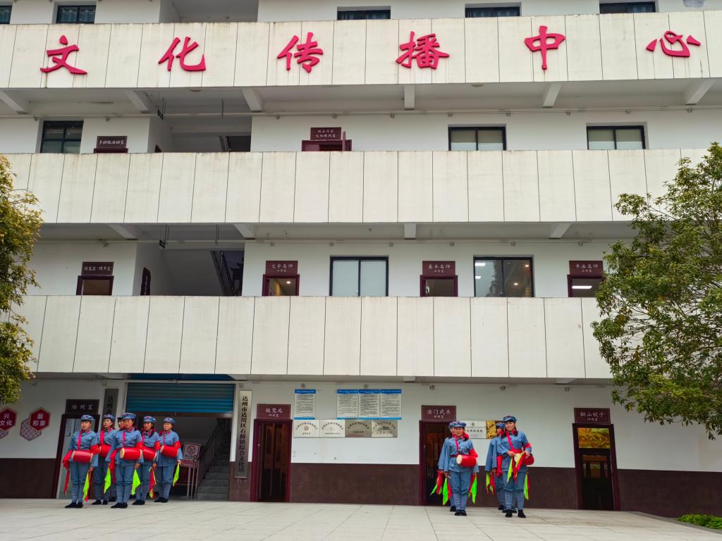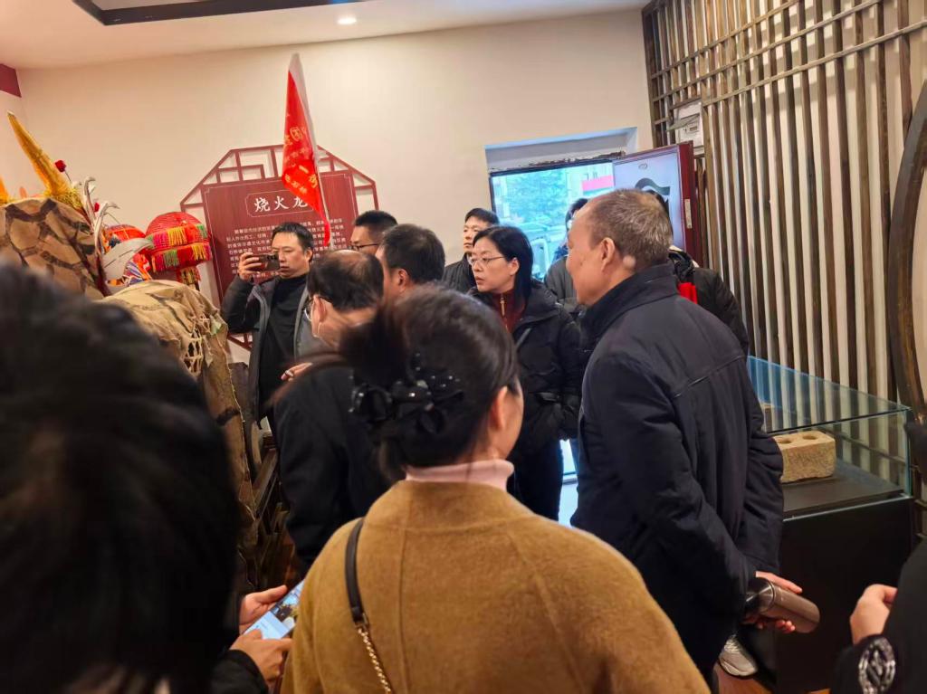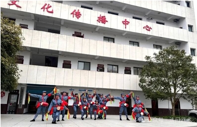 在双石片区文化传播中心,研学团队现场观看了由达州市宝善文旅有限公司推出的舞蹈“巴山女红军”展演,随后前往文化传播中心非遗研训室参观和了解“板凳龙”“法门武术”“翻山铰子”“烧火龙”等非遗的历史渊源及传承发展情况,“法门武术”代表性传承人姚德海大师现场指导团队进行了研学,并就“法门武术”技艺传承、创新路径问题与研学团队进行了深入的交流。该中心作为片区文化枢纽,承担着红色故事宣讲、非遗项目推广等重要职能,团队详细询问了中心在资源整合、活动策划、群众参与等方面的实践经验,探讨如何通过数字化手段扩大红色文化传播覆盖面,推动非遗项目与旅游的深度融合,让革命精神、传统民俗更好融入乡村日常生活。