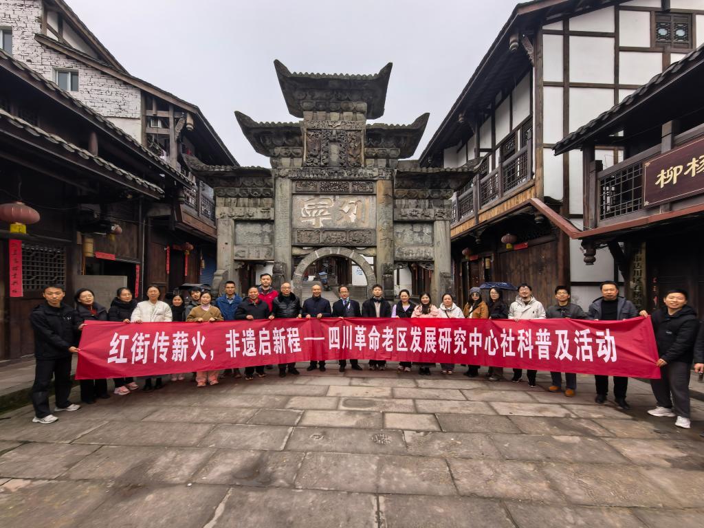 为深入挖掘川陕苏区红色文化内涵,探索革命老区文化传承与乡村振兴融合发展新路径,12月4日,四川文理学院四川革命老区发展研究中心主任陈岗教授带领研学团队20余人,赴达川区石桥古镇开展非遗及红色文化研学活动。团队先后在鲁家坪村双石片区文化传播中心非遗研训室、“中国红色第一街”列宁街、红军文化陈列馆、法门武术会馆等地进行了调研和研学,通过实地体验、亲身感悟。进而解锁鲁家坪村红色基因密码,探寻民俗文化与红色资源共生发展之道。